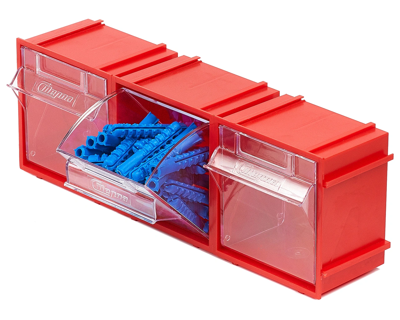 Комплект из 5-ти коробов откидных Стелла-техник F-105-1 (105х87х112мм.), красный, прозрачный служит для хранения мелкоштучных предметов. Данные короба с помощью специальных пазов соединяются друг с другом по всем четырем сторонам, благодаря чему, пользователь может выстроить систему хранения по желаемым ему габаритным размерам. Внутренние ячейки короба не подвержены случайному опрокидыванию. Откидная ячейка обеспечивают быстрый доступ к необходимым предметам. В случае необходимости полного высыпания или наполнения внутренние ячейки легко извлекается. Полезный внутренний размер ячеек 88х65х70мм. Специальный пластик, из которого выполнен короб, выдерживает значительные нагрузки и обладает оптимальной эластичностью. На задней стенке короба присутствуют отверстия для крепления, через которые можно легко прикрепить к стене, как отдельно каждый, так и целый собранный набор из коробов, любого количества. Обзорность содержимого сквозь прозрачные внутренние ячейки, наличие отсека для информационных бирок, легкое извлечение внутреннего короба для опустошения и наполнения, все это является неоспоримым преимуществом откидных коробов серии F. Температура эксплуатации от -10 до +70С.