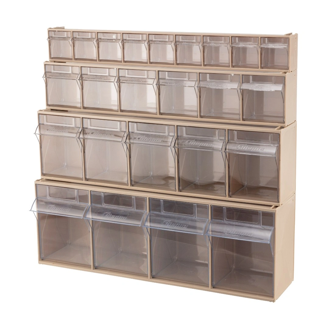 Короб откидной F-600-9-B, 600х68х78 мм 9 ячеек, бежевый / прозрачный служит для хранения мелкоштучных предметов. Данная система хранения не подвержена случайному опрокидыванию. Откидные ячейки обеспечивают быстрый доступ к необходимым предметам. В случае необходимости полного высыпания или наполнения короб легко извлекается. Полезный внутренний размер каждой ячейки 50х43х47мм.
