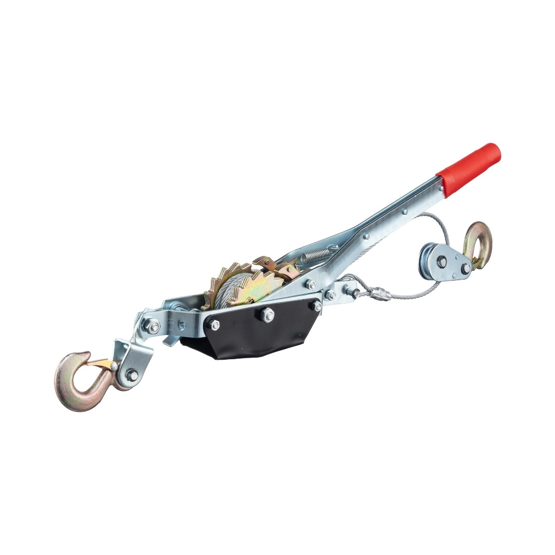 Ручные рычажные лебедки P20SG предназначены для подтягивания грузов, вытягивания автомобилей и других транспортных средств, для натягивания линий электропередач, установки радиомачт, а также для подтягивания различного оборудования при монтажных и строительных работах. Рукоять имеет пластиковый наконечник, что делает работу удобной и исключает выскальзывание. При длине троса 3м. тяговое усилие достигает 750кг., а при длине 1,5м уже 2т., диаметр троса 5мм., габариты 600х200х150мм., длина 3м. Вес 3 кг. Управление механизмом осуществляется за счет качения рычага. Храповый механизм работает только в одну сторону. Данный ручной механизм позволяет производить работы в местах, где отсутствует источник электроэнергии. Количество крюков 2. Преимущества лебедки P20SG: легкость в работе; небольшой вес; прочная конструкция; высококачественный трос; не требует дополнительного обслуживания; рукоять рычажной лебедки имеет оптимальную длину, что снижает физическую нагрузку с пользователя; крюки имеют предохранительные карабины для защиты груза от соскальзывания.