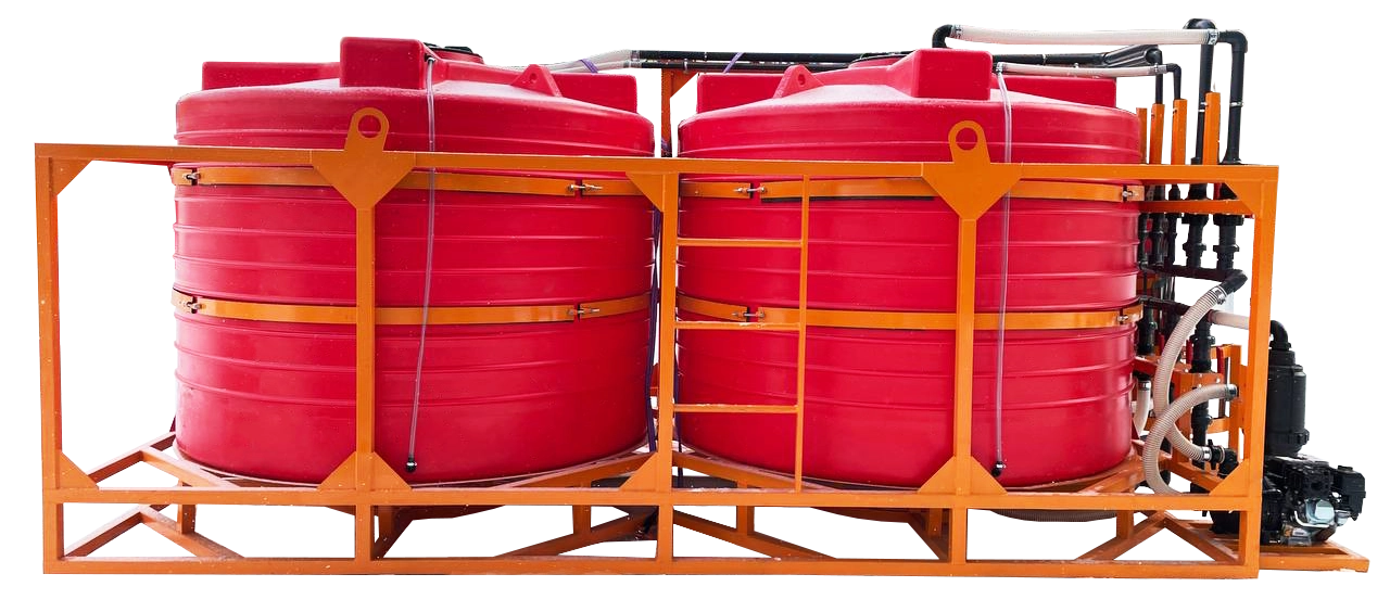 Используемые ёмкости объёмом 5000 или 6000 литров производятся методом ротационного формования из пищевого полиэтилена. Они бесшовные, химически стойкие и оснащены конусным дном для полного слива. Крышка герметичная, с дыхательным клапаном, откидывается на 180°.