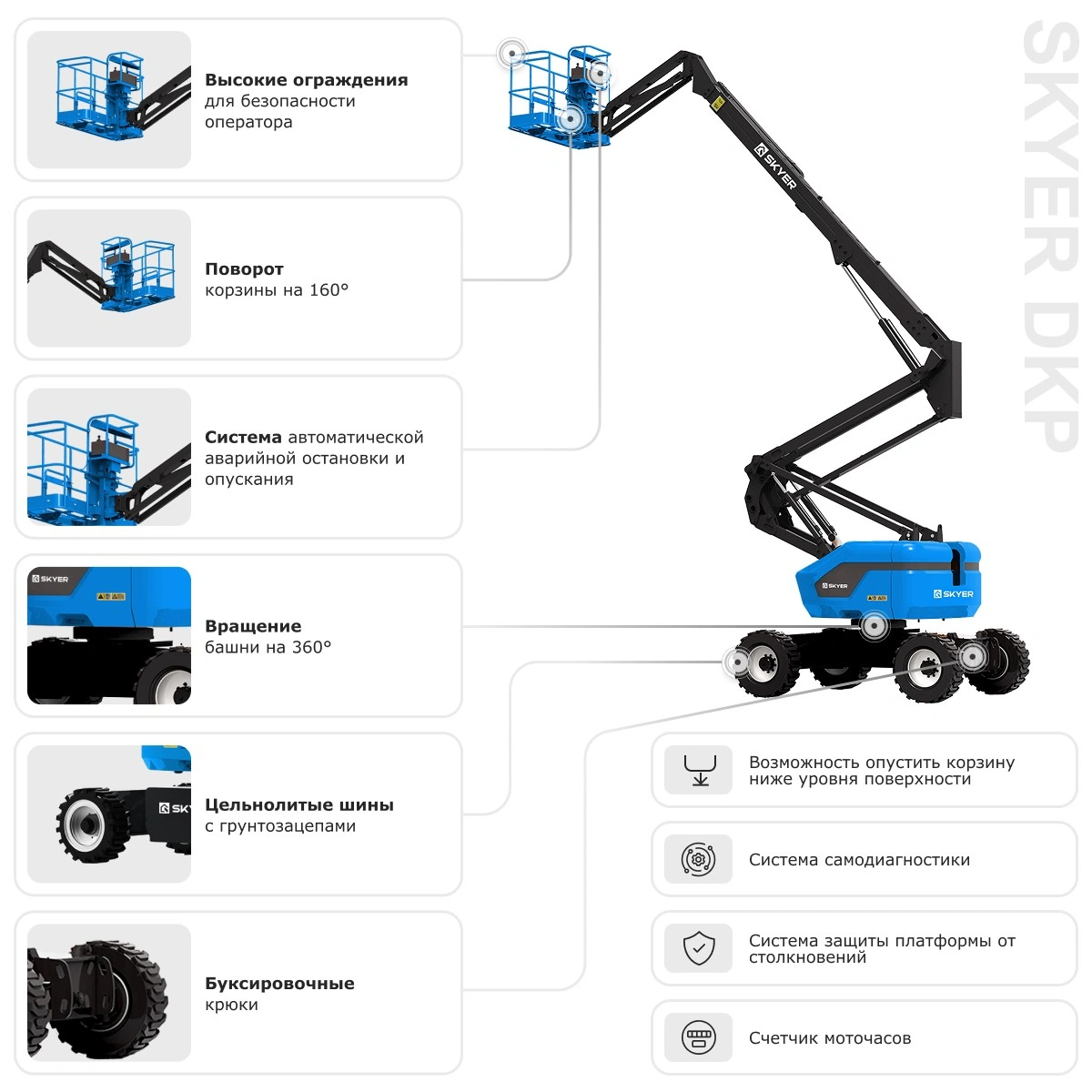 Дизельный коленчатый подъемник SKYER DKP2025 — автономный гигант для уличных работ!