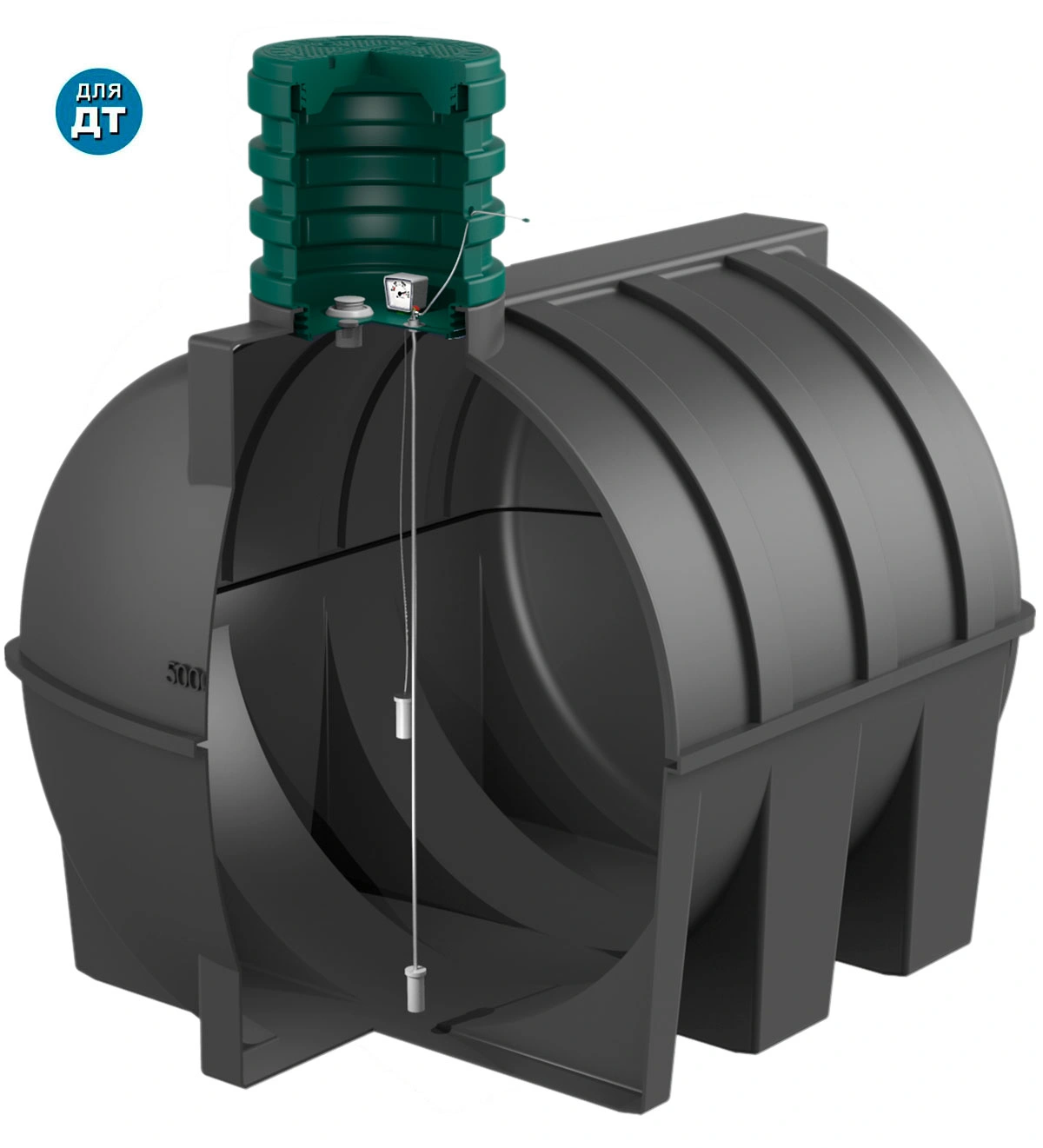 Накопительная ёмкость DT объёмом 3000 литров предназначена для подземного хранения дизельного топлива с возможностью дальнейшей выдачи. Все элементы конструкции, контактирующие с топливом, выполнены из химически стойкого полиэтилена, не подверженного коррозии и агрессивным веществам. Ёмкость поставляется в комплекте с базовой системой подачи топлива.