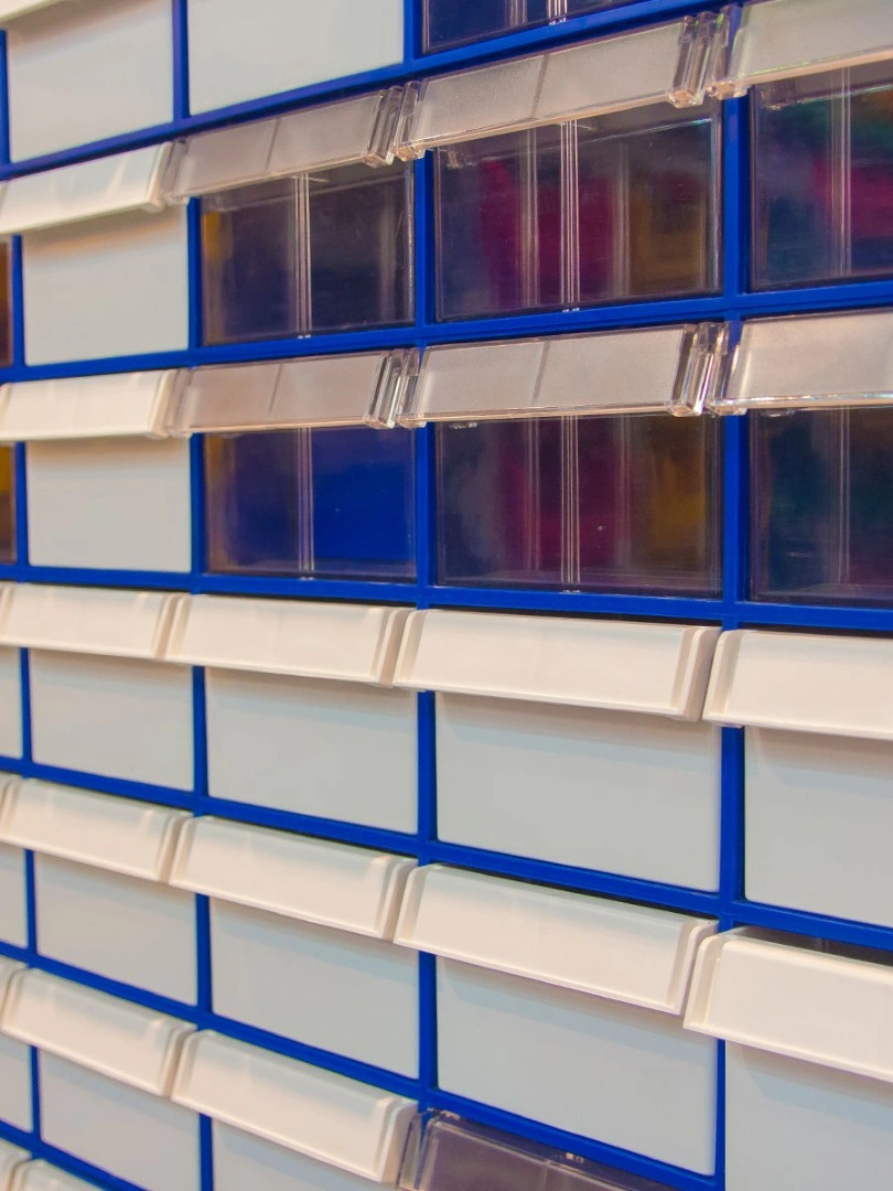 Шкаф в сборе Стелла-техник С-2-90-Д на 90 коробов (ЛДСП) отлично впишется в интерьер любого склада, подсобного или торгового и офисного помещения. Цвет ламинированного ДСП - серый. Цвет коробов С-2 синий, прозрачный. Главная особенность шкафа – объединение большого количества коробов с определенным типовым размером. Наличие дверей позволяет скрыть содержимое шкафа от посторонних глаз и ограничить несанкционированных доступ к содержимому. Регулируемые ножки шкафа гарантируют устойчивость шкафа даже на неровных полах. Изделие допускает одновременное применение 90 пластиковых складских контейнеров. Прозрачные внутренние короба С-2 позволяют легко находить содержимое и контролировать полноту наполнения. Внутренний короб легко вынимается для опустошения или наполнения, по принципу спичечного коробка. Он имеет рельефную структуру днища и усиленные толстые стенки. За счет этого изделие справляются с высокими эксплуатационными нагрузками. Внутренние полезные размеры выдвижного короба: 220х123х80мм. Возможность установки одной продольной перегородки (артикул: С-2 продольная) или до трех поперечных (артикул: С-2 поперечная). Продольная и поперечная перегородки одновременно не устанавливаются. Перегородки в комплект короба не входят и поставляются отдельно. Рекомендуемая нагрузка на короб, в составе шкафа, не более 3кг.