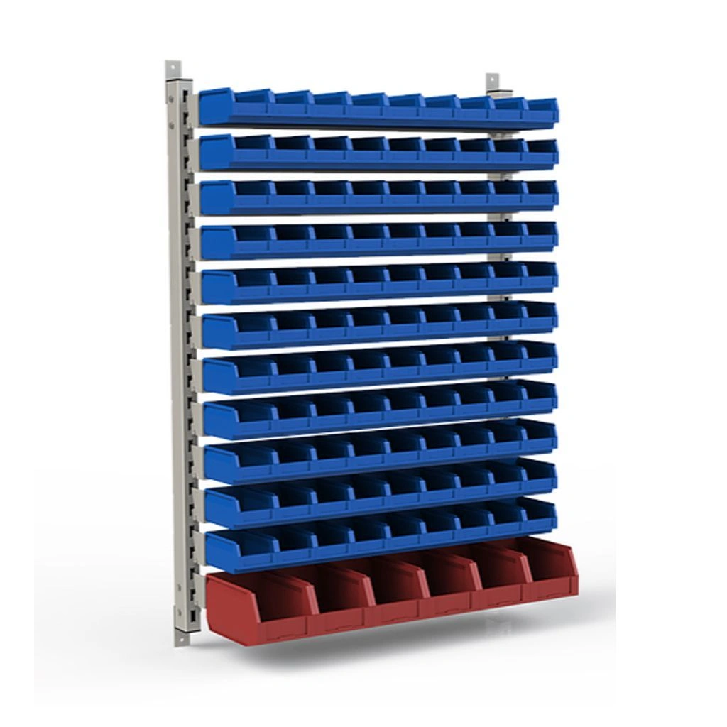 Стеллаж разработан специально для систематизации, хранения различных комплектующих, деталей, запчастей, крепежных и строительных материалов: болты, гайки, сверла, подшипники, метизы, фитинги, сантехника, зажимы, заклепки и т.д.