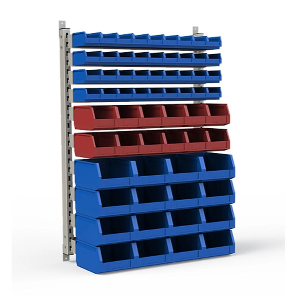 Стеллаж разработан специально для систематизации, хранения различных комплектующих, деталей, запчастей, крепежных и строительных материалов: болты, гайки, сверла, подшипники, метизы, фитинги, сантехника, зажимы, заклепки и т.д.