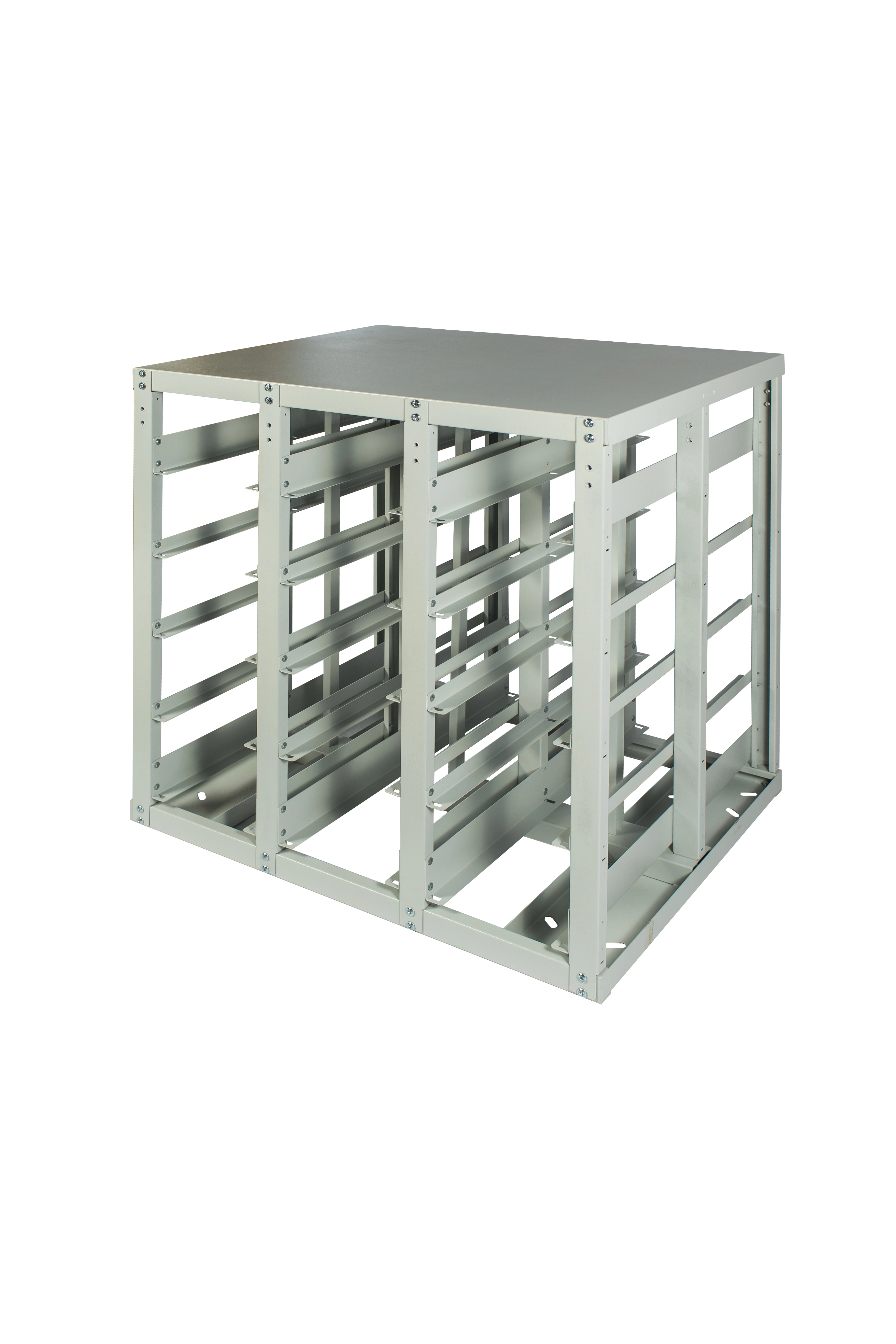 Стеллаж-стойка для бокса модели V-3 отличается достаточно высокой несущей способностью и предназначена для размещения контейнеров V-3 в отдельных ячейках на продольных направляющих.