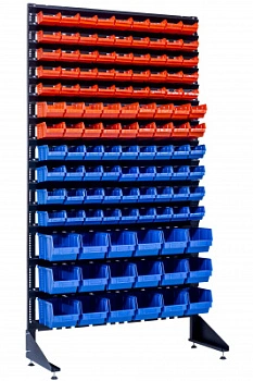 Собрать стеллаж с необходимой комплектацией, подобрать стойку, размеры ящиков и цветовую палитру.