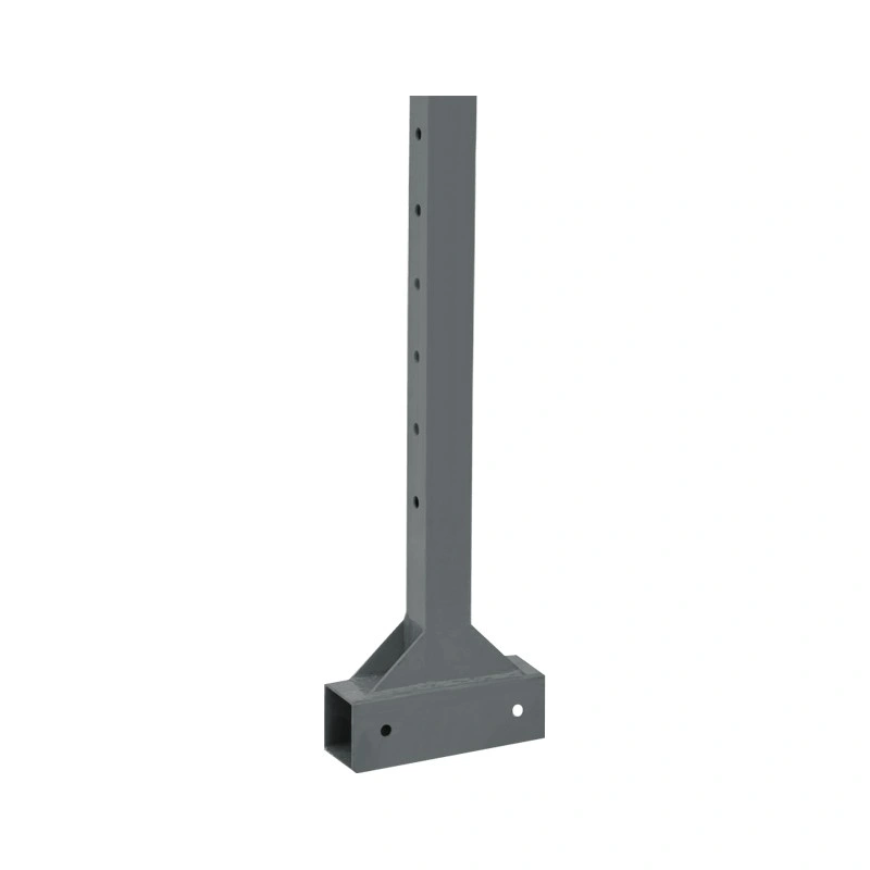 Стойка задней опоры консоли крепится на балке, при этом она может располагаться не только в концевой части. Задняя стойка достаточно широкая, чтобы противовесная система получилась надежной. Конструкцией предусмотрена установка штырей для закрепления контргруза. Элемент изготавливается из прочного стального квадратного профиля.