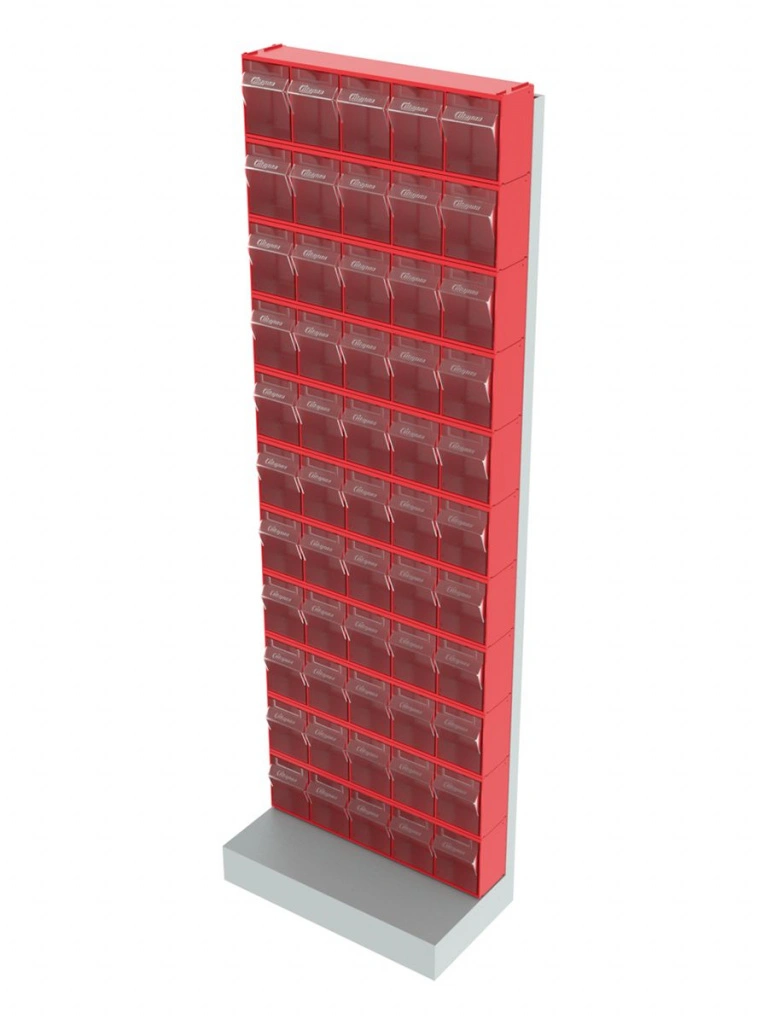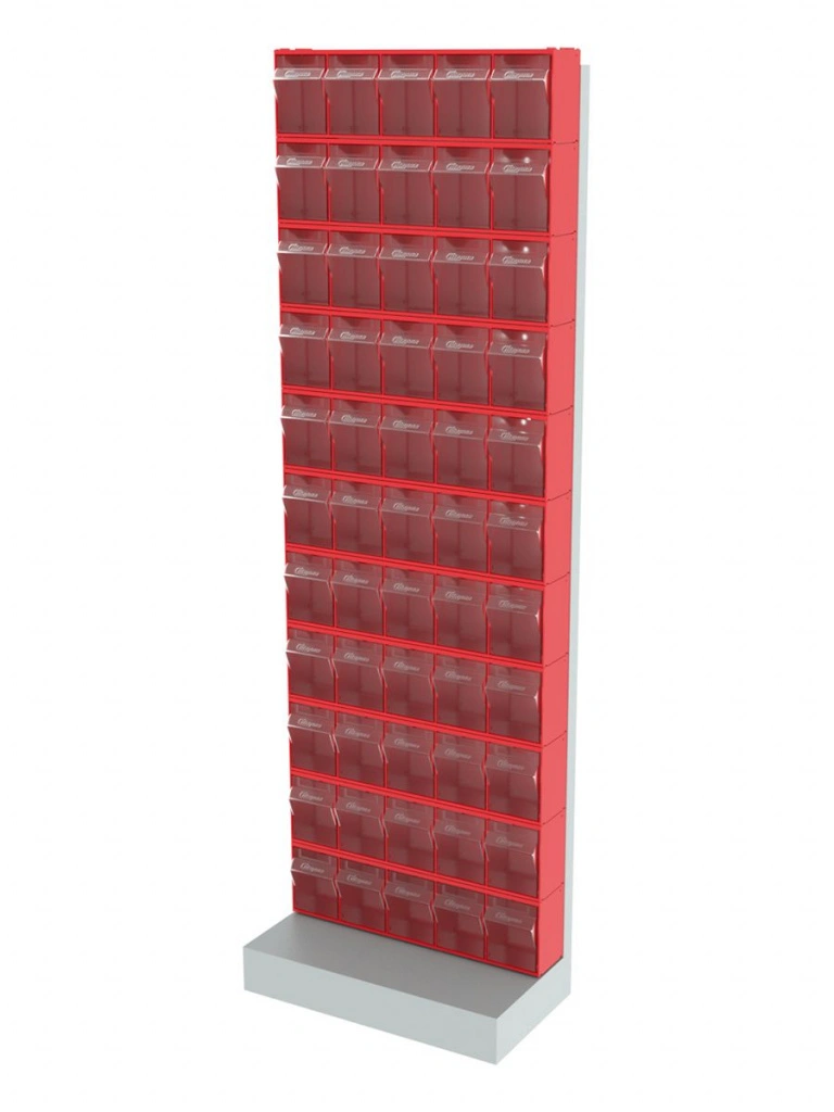 Стойка напольная Стелла-техник 405-00-00-11 (610х325х1850) представляет собой удобную систему хранения на основе откидных коробов. Стойка подойдет для выставочных залов, магазинов, офисов, складов. Комплектация: Рама FOX (610х325х1850) V405 напольная односторонняя с основанием - 1 шт.; Короб откидной Стелла-техник F-600-5 , 600х140х168мм, 5 ячеек, красный, прозрачный - 11 шт.; Упаковка. Преимущества: Металлическое основание; Значительная устойчивость; Хорошая вместимость; Длительный срок службы.