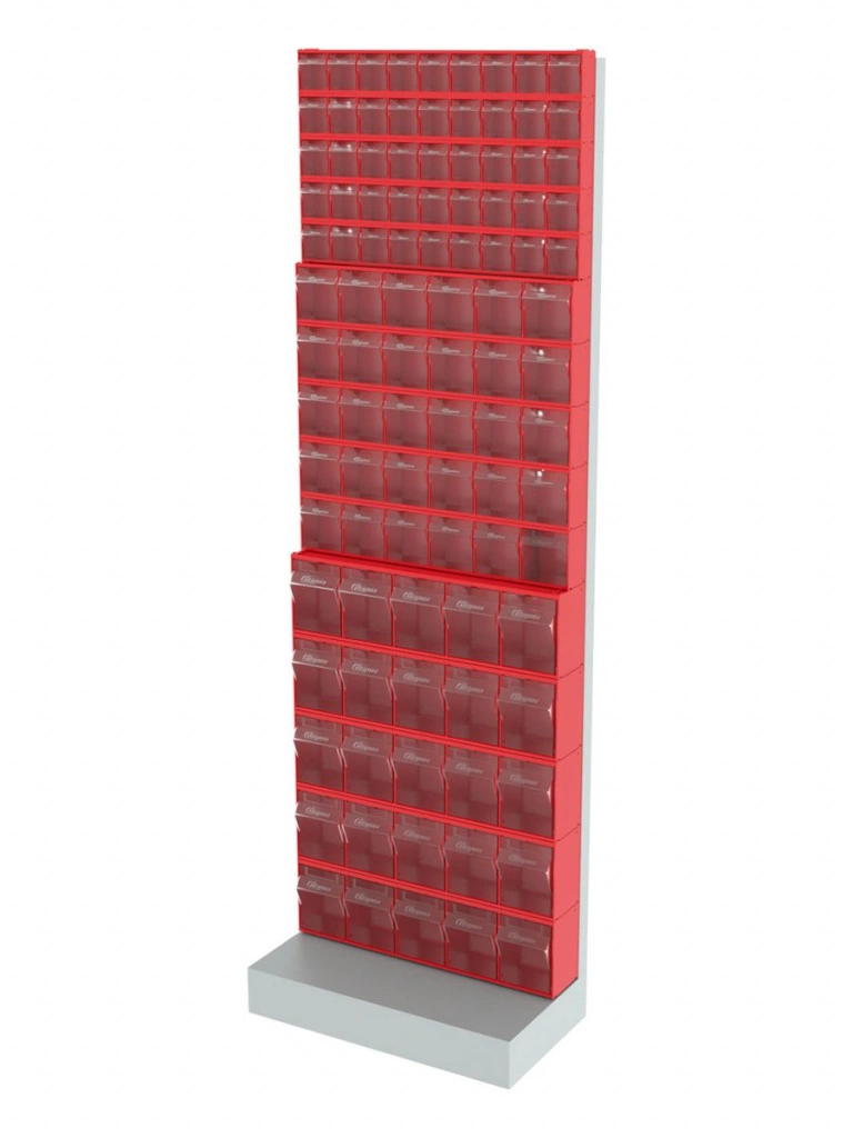 Стойка напольная Стелла-техник 405-05-05-05 (610х325х1850) представляет собой удобную систему хранения на основе откидных коробов. Стойка подойдет для выставочных залов, магазинов, офисов, складов. Комплектация: Рама FOX (610х325х1850) V405 напольная односторонняя с основанием - 1 шт.; Короб откидной Стелла-техник F-600-9 , 600х68х78мм, 9 ячеек, красный, прозрачный -5 шт.; Короб откидной Стелла-техник F-600-6 , 600х96х112мм, 6 ячеек, красный, прозрачный – 5 шт.; Короб откидной Стелла-техник F-600-5 , 600х140х168мм, 5 ячеек, красный, прозрачный – 5 шт.; Упаковка. Преимущества: Металлическое основание; Значительная устойчивость; Хорошая вместимость; Длительный срок службы.