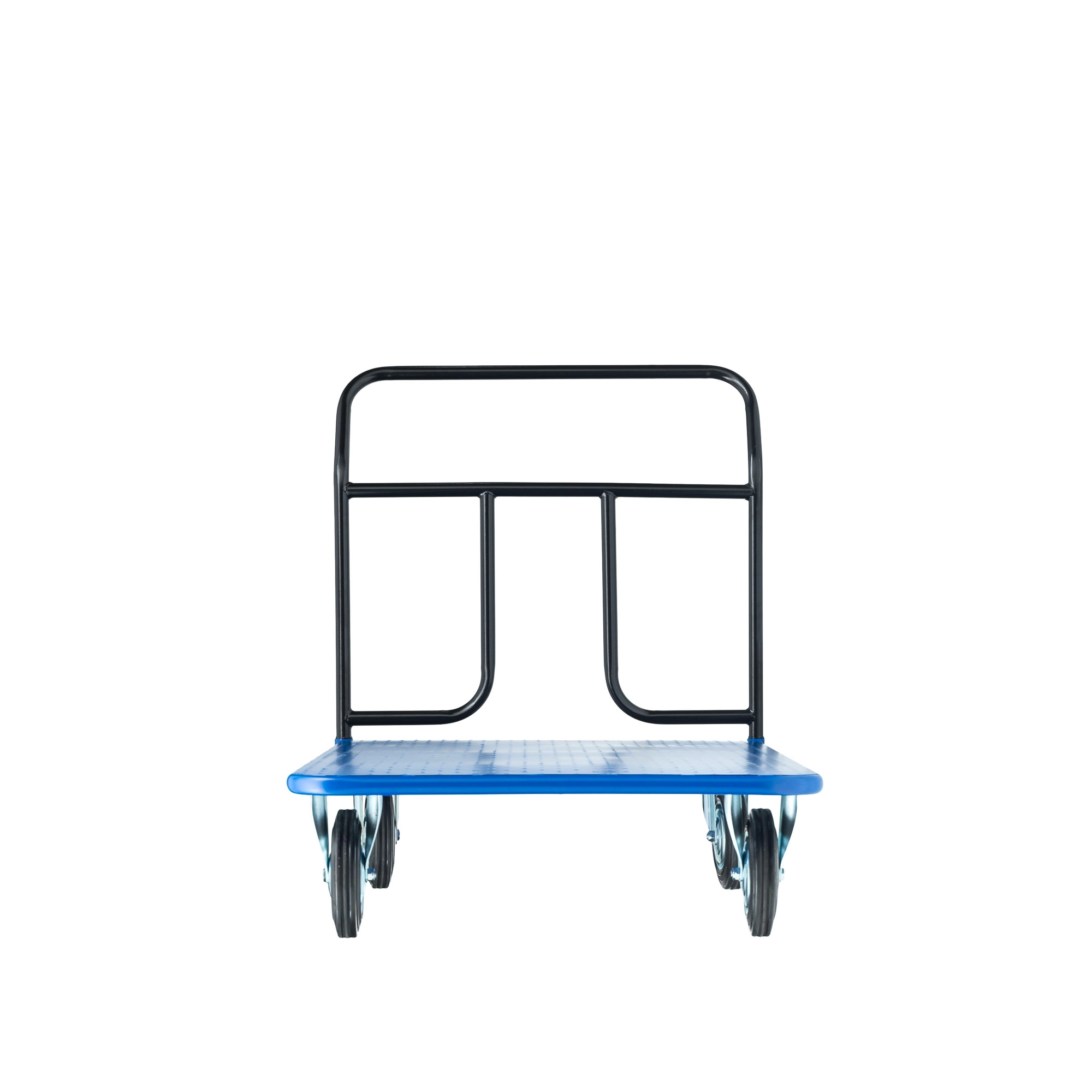 Платформенная 4-х колесная тележка КП-900-200-К используется для перемещения крупногабаритных и тяжелых грузов в складских помещениях. Ручка крепится к платформе болтами, для компактного хранения можно снять, высота ручки 750мм. Металлическая платформа изготовлена из стального листа толщиной 1,2мм., размер платформы 800х1500мм., покрытие полимерное, цвет - синий. Для легкого перемещения тележка КП-900-200-К комплектуется двумя поворотными и двумя неповоротными колесами, изготовленными из высококачественной литой резины, диаметром 200мм., комплектом крепежа. Большая платформа тележки позволяет перемещать крупногабаритные и тяжелые грузы. Грузоподъемность до 550кг.