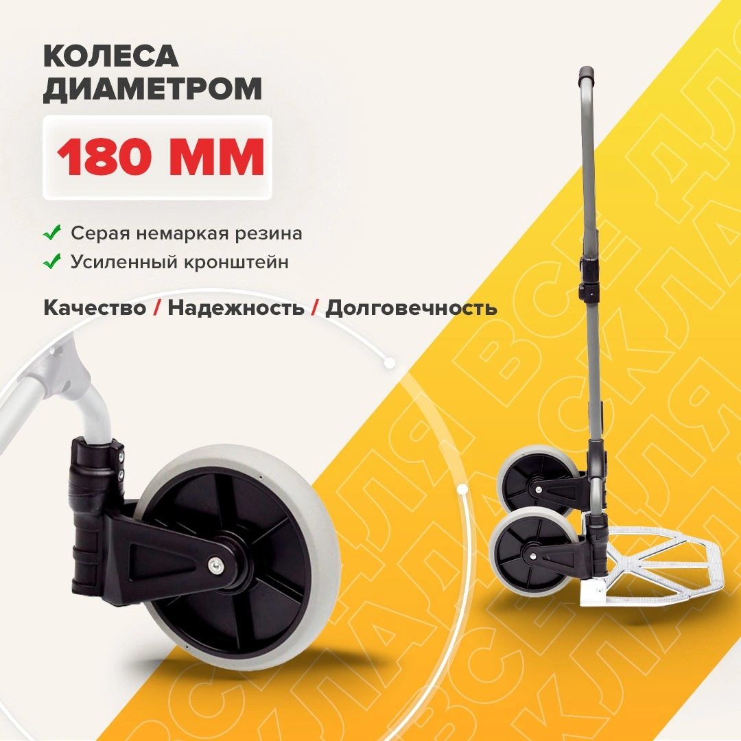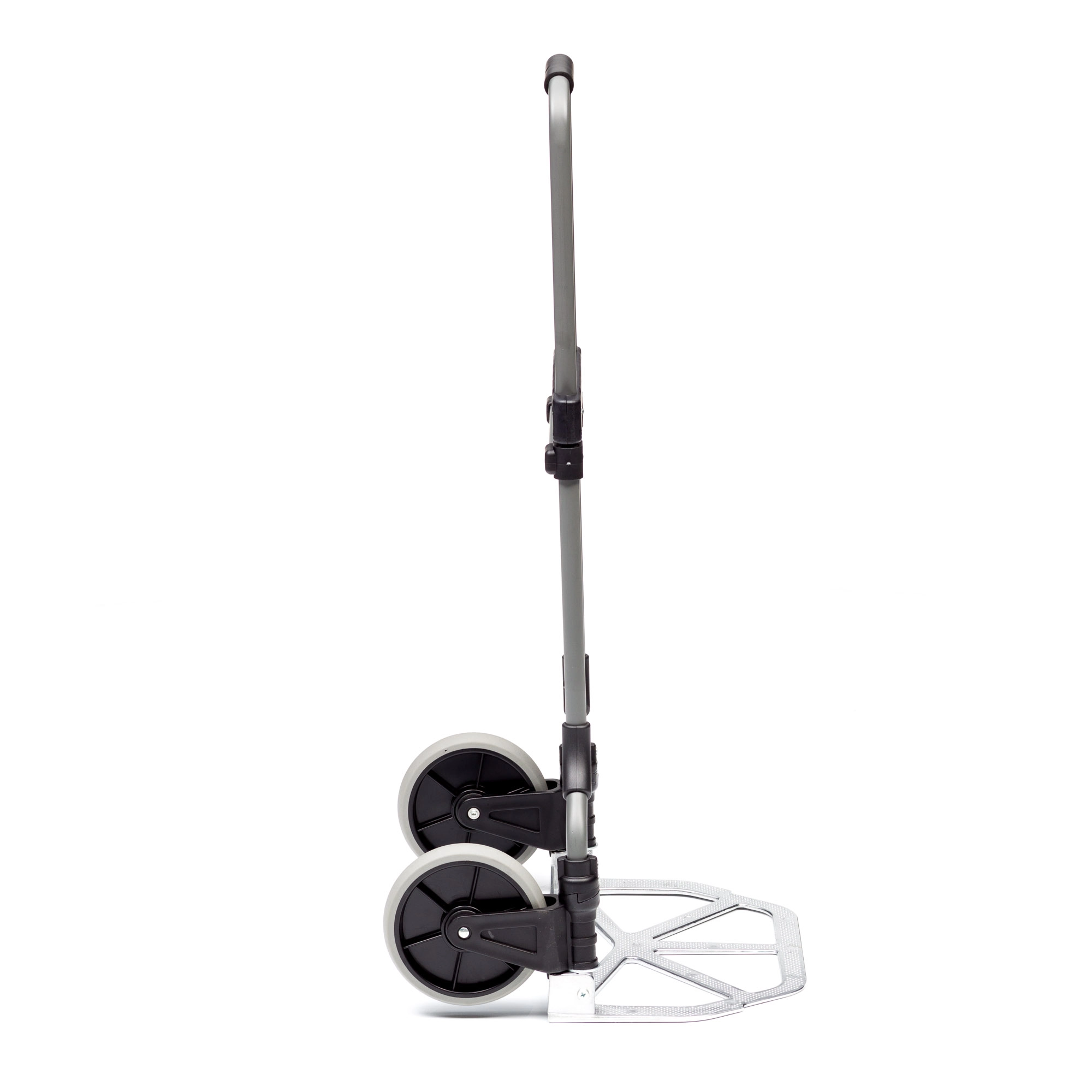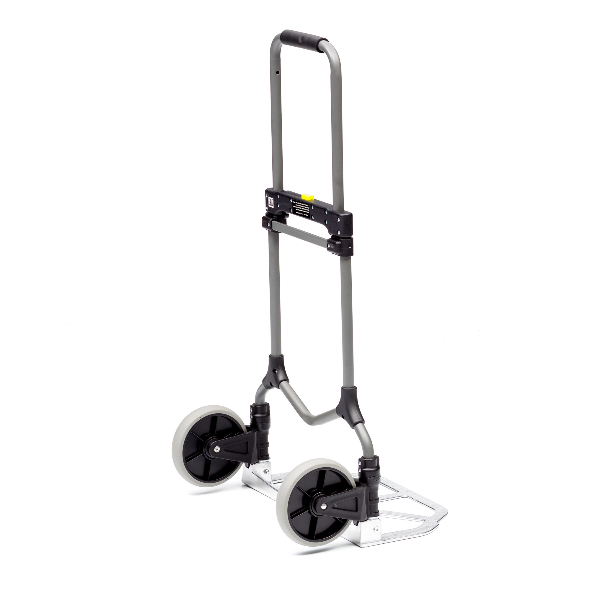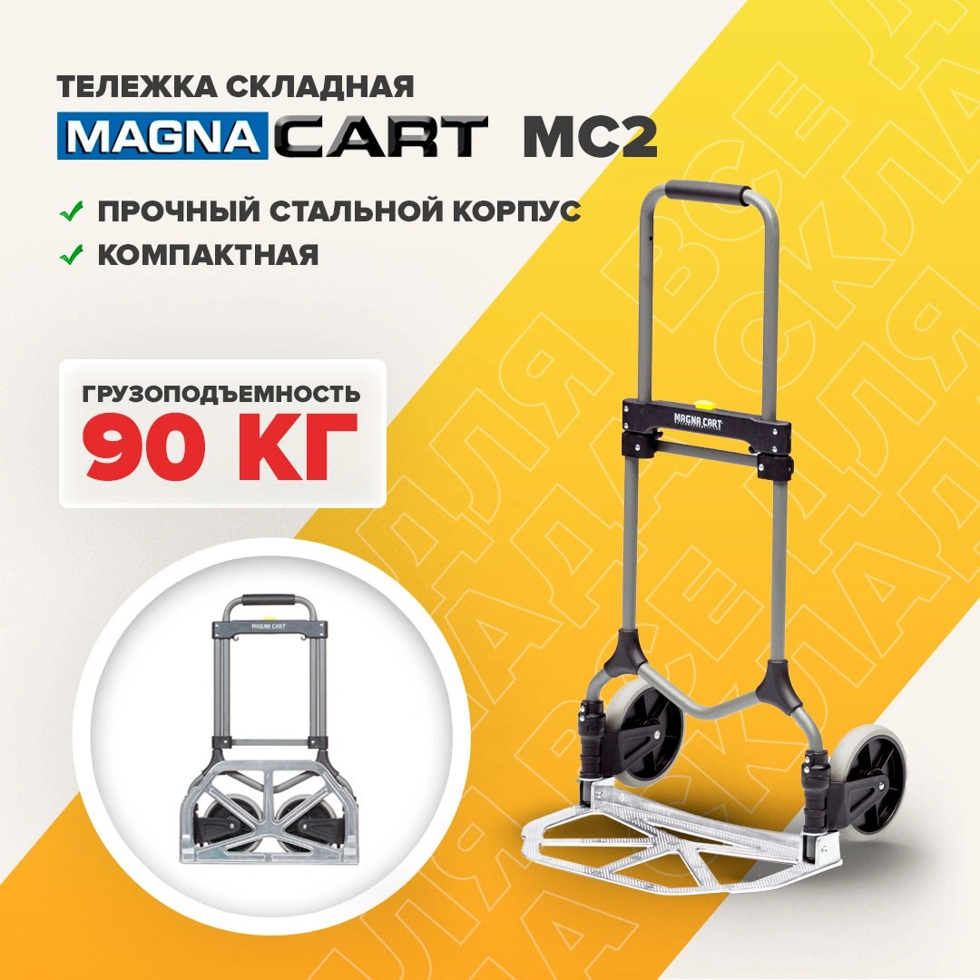 Складная двухколесная тележка MAGNA CART MC2 очень компактна, вынослива и легко поместится в багажник автомобиля или на полку в самолете. Прочный стальной корпус позволяет перемещать различные грузы весом до 90кг. Тележка, при желании, моментально раскладывается и собирается за счет сложения телескопической ручки и колес вдоль корпуса. Размер площадки 279х387мм., максимальная высота ручки 980мм., диаметр колес 180мм. Складные тележки идеально подходят для транспортировки выставочного оборудования, обслуживания маленьких складов и перевозки грузов в домашних условиях или во время путешествий. За счет узкого профиля и компактных размеров технику легко разместить на полке в самолете или багажнике машины.