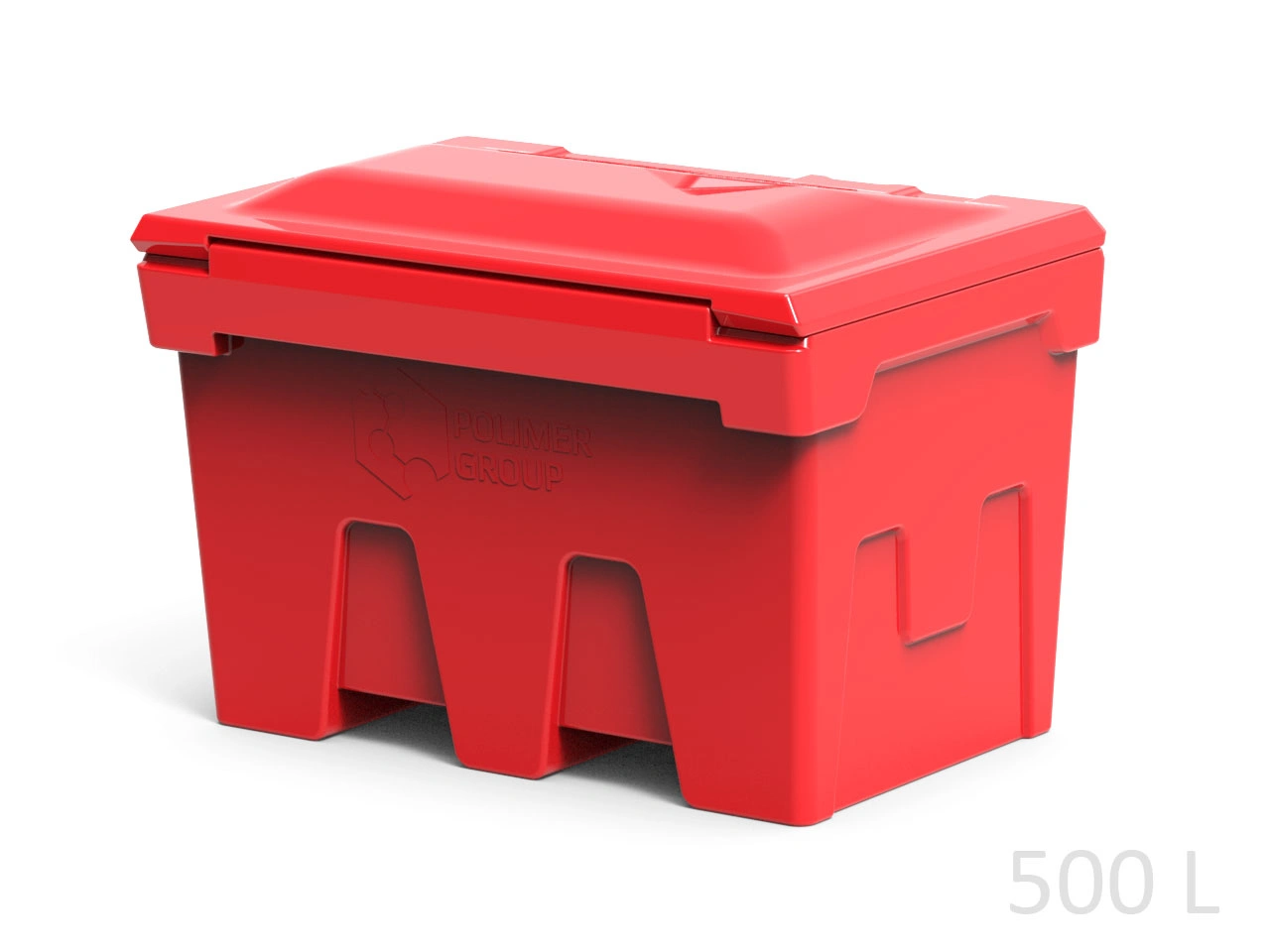Объем контейнера для песка 500 л. Предназначен для хранения песка, применяемого для тушения пожаров на заправочных станциях. Изготовлен из полиэтилена методом ротоформования, что придает особую прочность.